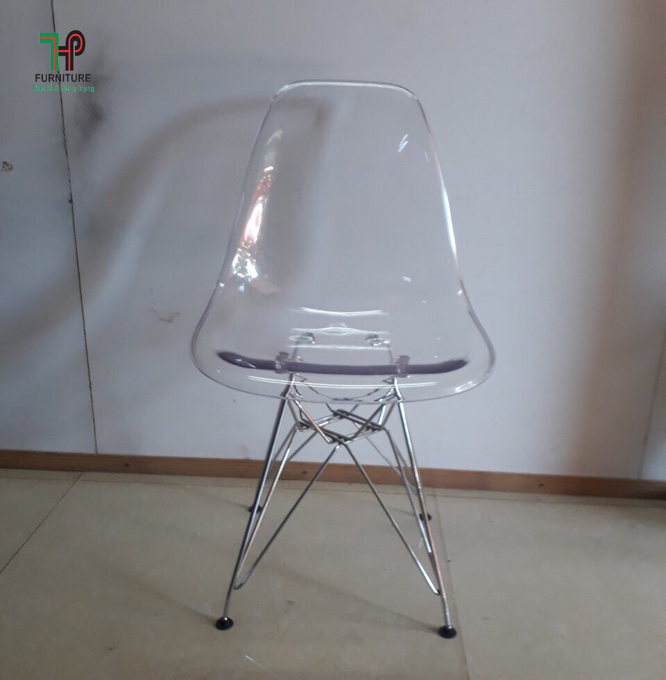 Ghế cafe trong suốt chân sắt xi